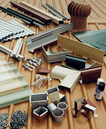 Steel Roof Sheeting, Guttering, Downpipes, Ridge Capping, Valley Gutter, Gable Rolls and Flashings are all manufactured from either Colorbond, Zincalume or Galvanised coated Steel. See Picture Below: Roof sheeting profiles such as Corrugated, Dek, Span Roof, Mini Corro, Kliplok and many others are available.