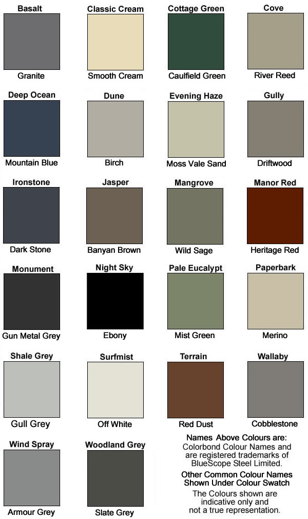 | Metal Roofing Products Colorbond Colours | |||||